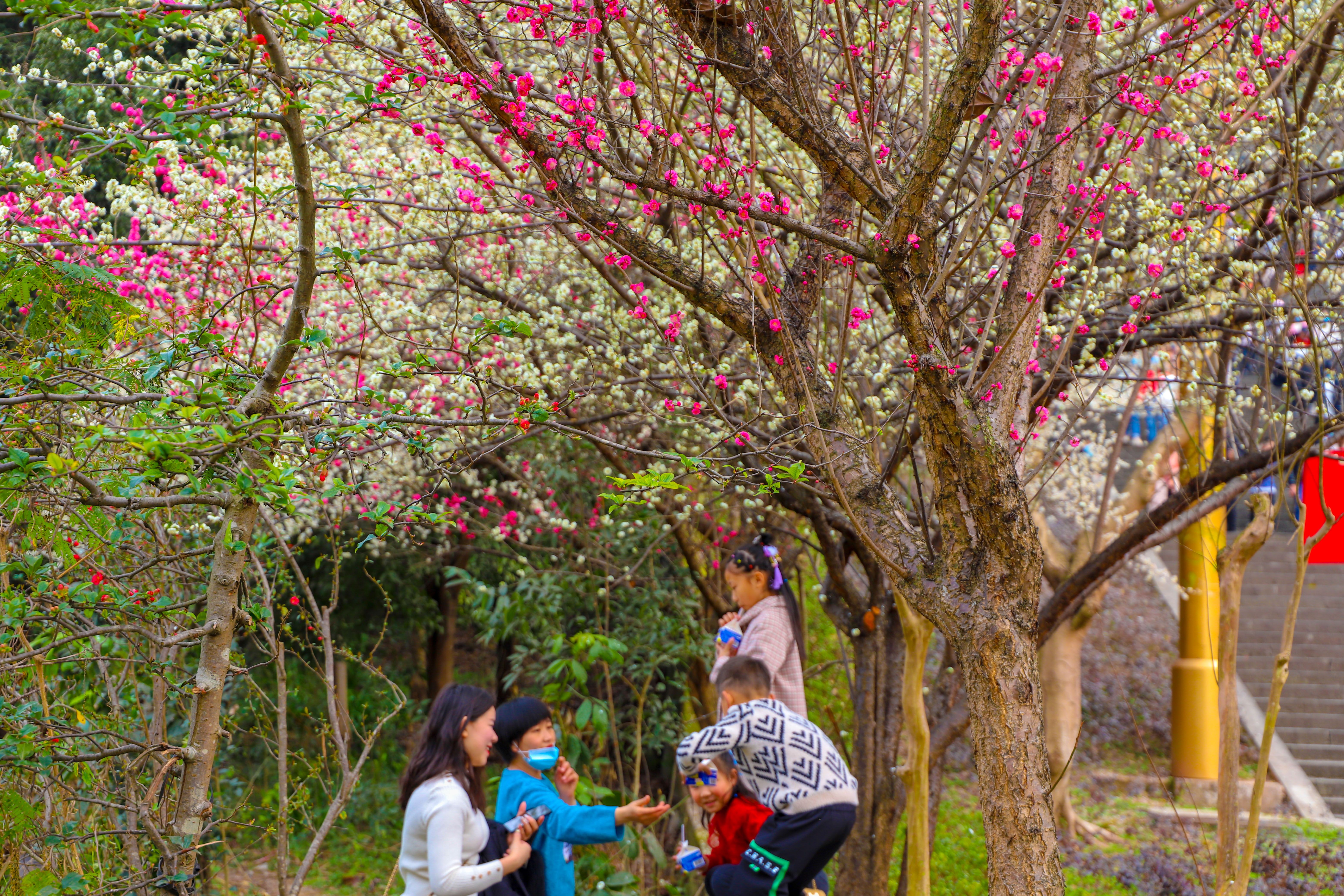 在登云梯,一株株梅樹挺秀矗立于云梯兩側(cè),遠遠望去,一叢叢梅花紅似霞暈。梅樹下,不少市民們正賞花識香,不時用手機定格下至美一刻。