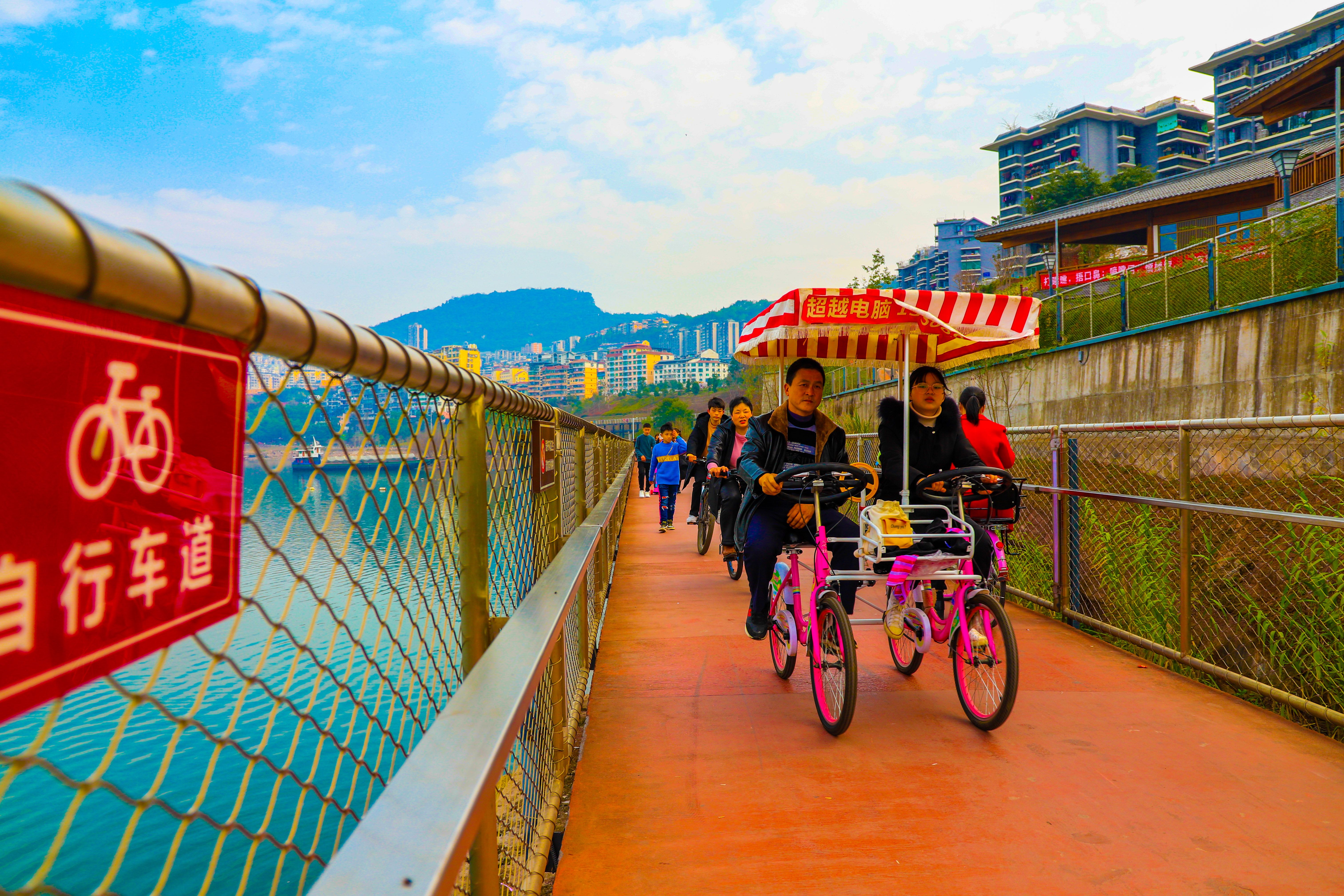據(jù)介紹,33公里長的環(huán)湖綠道由慢行道、跑步道、自行車道組成,濱江岸線宛如一縷飄帶,將月光草坪、濱江公園、四方井公園等節(jié)點相連,與登云梯、龍脊嶺公園等共同組成云陽的“城市花園”,實現(xiàn)了“騎走跑坐可享、山水花石可賞、文史科藝可品”的目標,成為遠者來、近者悅的假日休閑好去處。