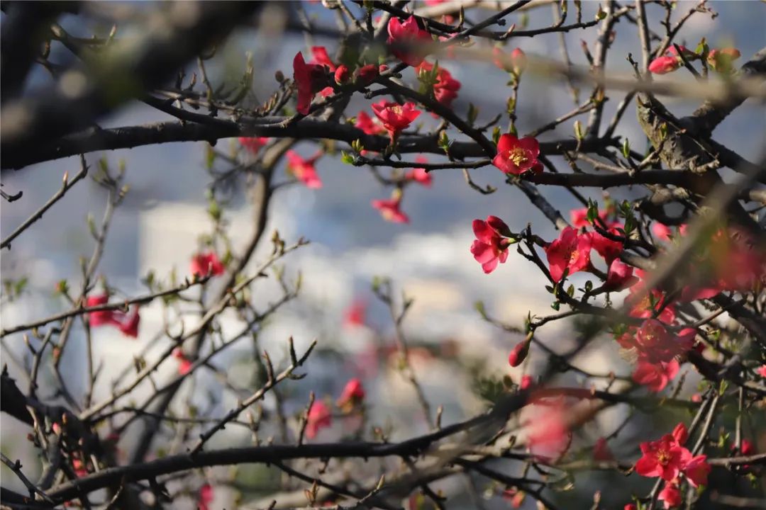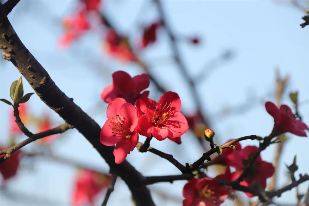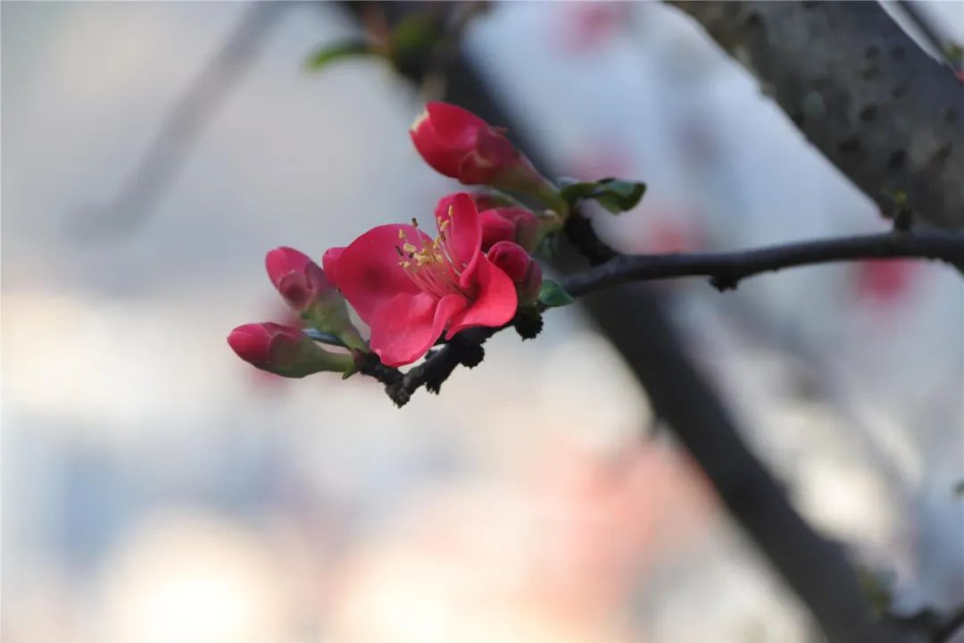 紅梅那一抹紅點(diǎn)亮了月光草坪的春天