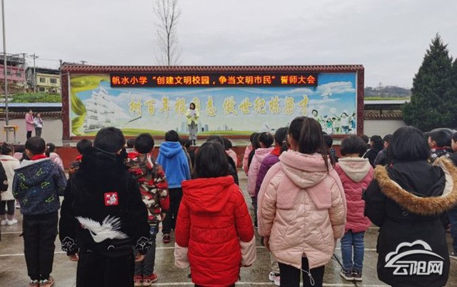云陽(yáng)網(wǎng)訊(通訊員 陳云云)3月9日,帆水小學(xué)開展了“創(chuàng)建全國(guó)文明城市,爭(zhēng)做文明學(xué)生”誓師大會(huì)。