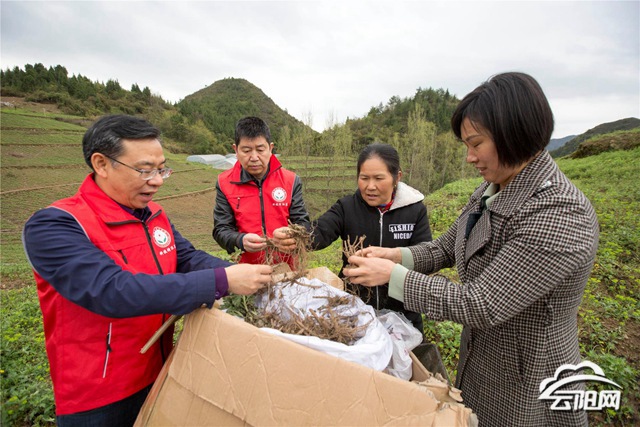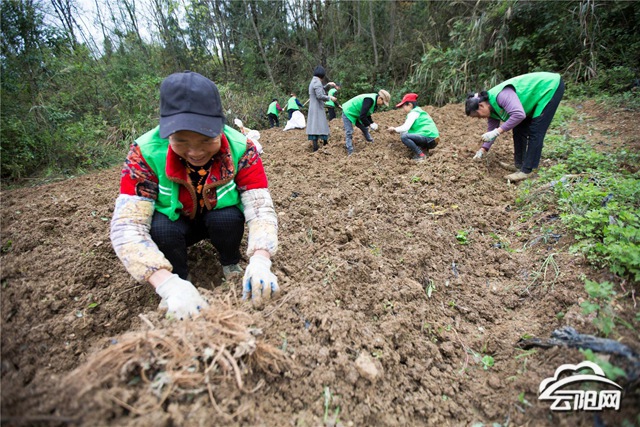 “菊花是淺表性植物,成活率高,種植深度在10公分左右,露出菊花芽,便于發(fā)新芽。"眭順照一邊教村民分菊花苗,一邊教他們種植。