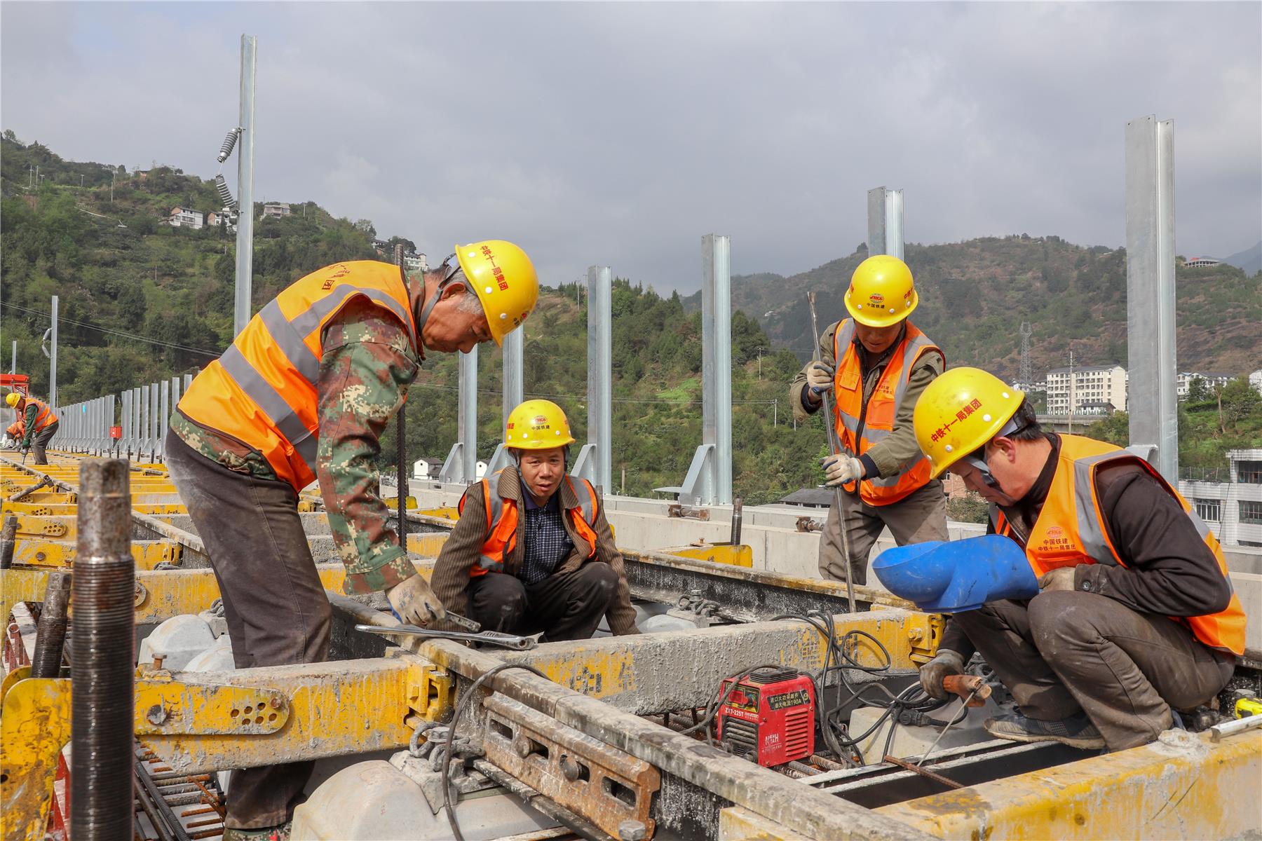 3月22日,鄭萬高鐵云陽段巴陽雙線特大橋和澎溪河多線特大橋等地,工人師傅正在緊張有序進行混凝土澆筑、鋼筋綁扎、軌枕安裝等鋪軌前期準備工作,施工現場呈現出一片熱火朝天、大干快上的忙碌景象。