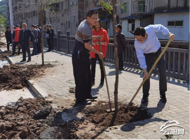 云陽網(wǎng)訊 近日,紅獅鎮(zhèn)組織機(jī)關(guān)60多名干部職工和社區(qū)志愿者,在集鎮(zhèn)范圍開展“我為祖國植十棵樹”義務(wù)植樹活動。