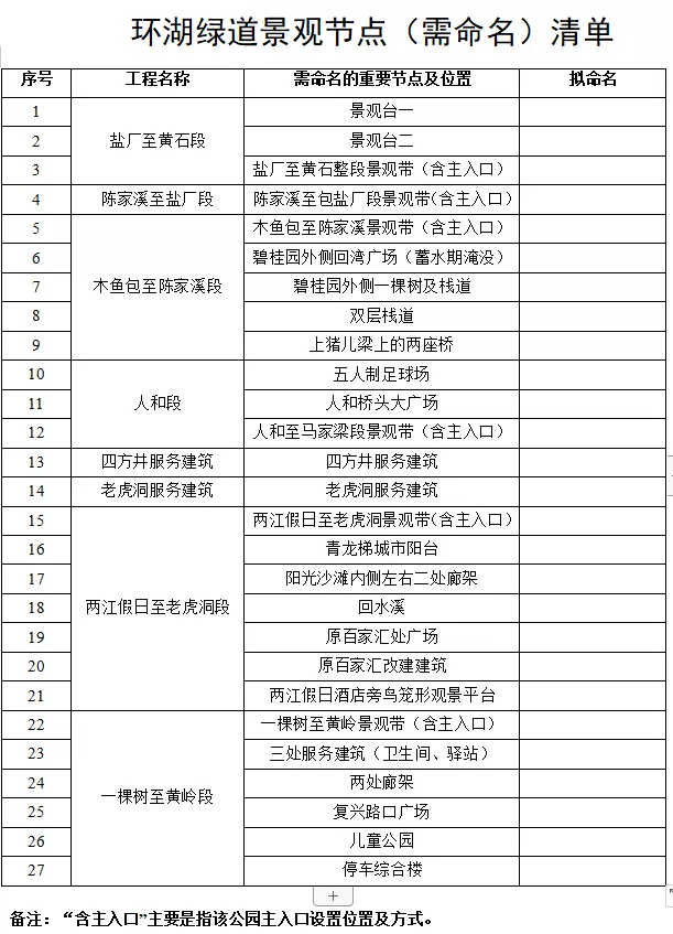 (三)名稱(chēng)征集的內(nèi)容包括節(jié)點(diǎn)公園和公園內(nèi)對(duì)應(yīng)具體景觀節(jié)點(diǎn)(某一處、某幾處或全部景觀節(jié)點(diǎn)均可)、名稱(chēng)寓意說(shuō)明、聯(lián)系人姓名、聯(lián)系人身份證號(hào)、聯(lián)系電話。
