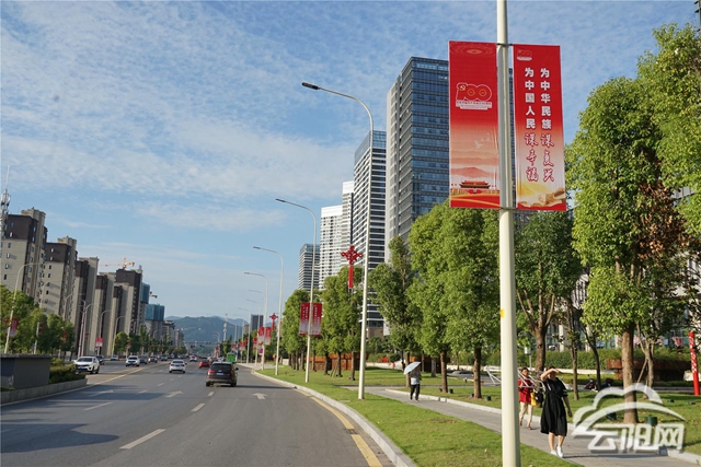 云陽網訊(實習生 楊力)走在云陽大街小巷,細心的市民會感到濃郁的紅色文化氣息撲鼻而來,振奮人心。在縣城的主干道、街道、公園等地,沿街懸掛著慶祝中國共產黨成立100周年慶祝活動標語、標識,燈箱滾動播放著公益廣告,一抹抹鮮艷的“中國紅”,成了街頭一道道靚麗風景線。