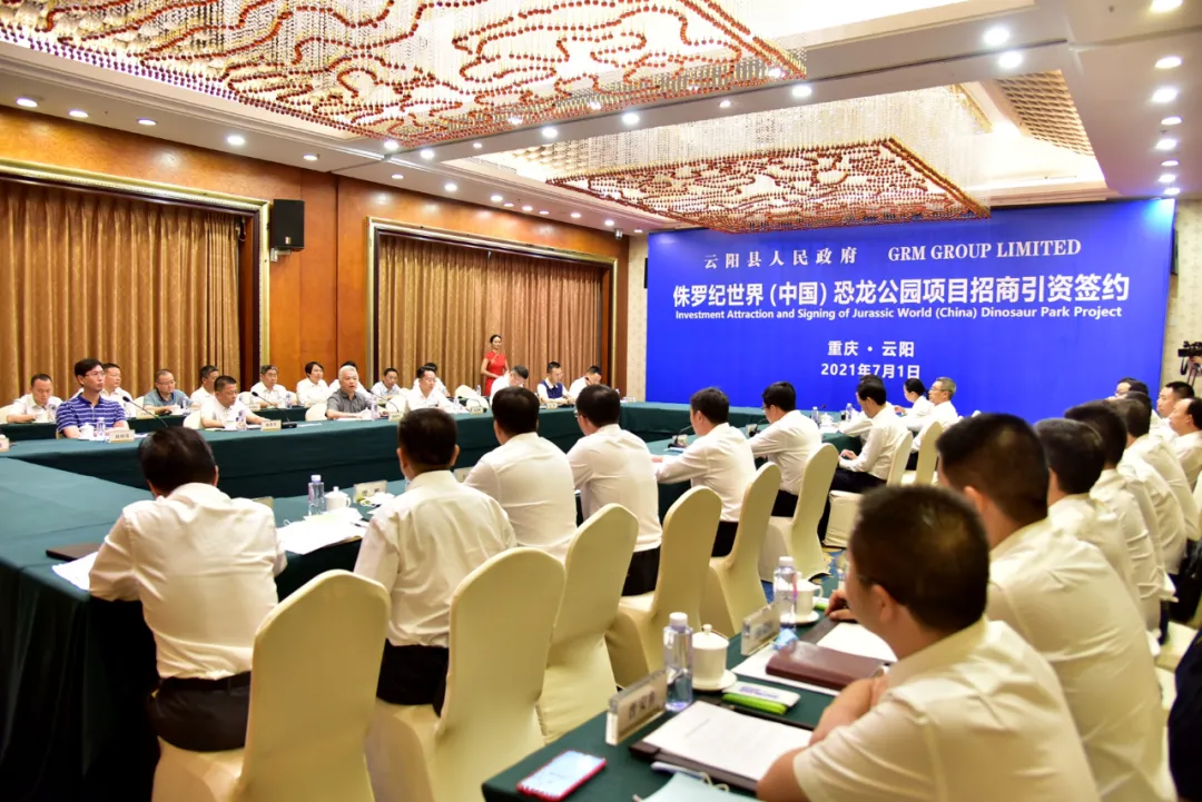 云陽網訊(記者 段斯斯 熊力毅)7月1日,云陽縣人民政府和GRM GROUP LIMITED(香港)舉行侏羅紀恐龍公園項目招商引資簽約儀式。縣委書記、縣長覃昌德強調,要深入貫徹落實習近平總書記關于生態文明建設的重要講話精神,充分認識到保護、研究、利用好云陽恐龍化石群的重要意義,雙方秉承友好協商、精誠合作的態度,一往無前、攻堅克難,共同將侏羅紀恐龍公園項目建設好、管理好、運營好,推動中國恐龍文化走向全世界。