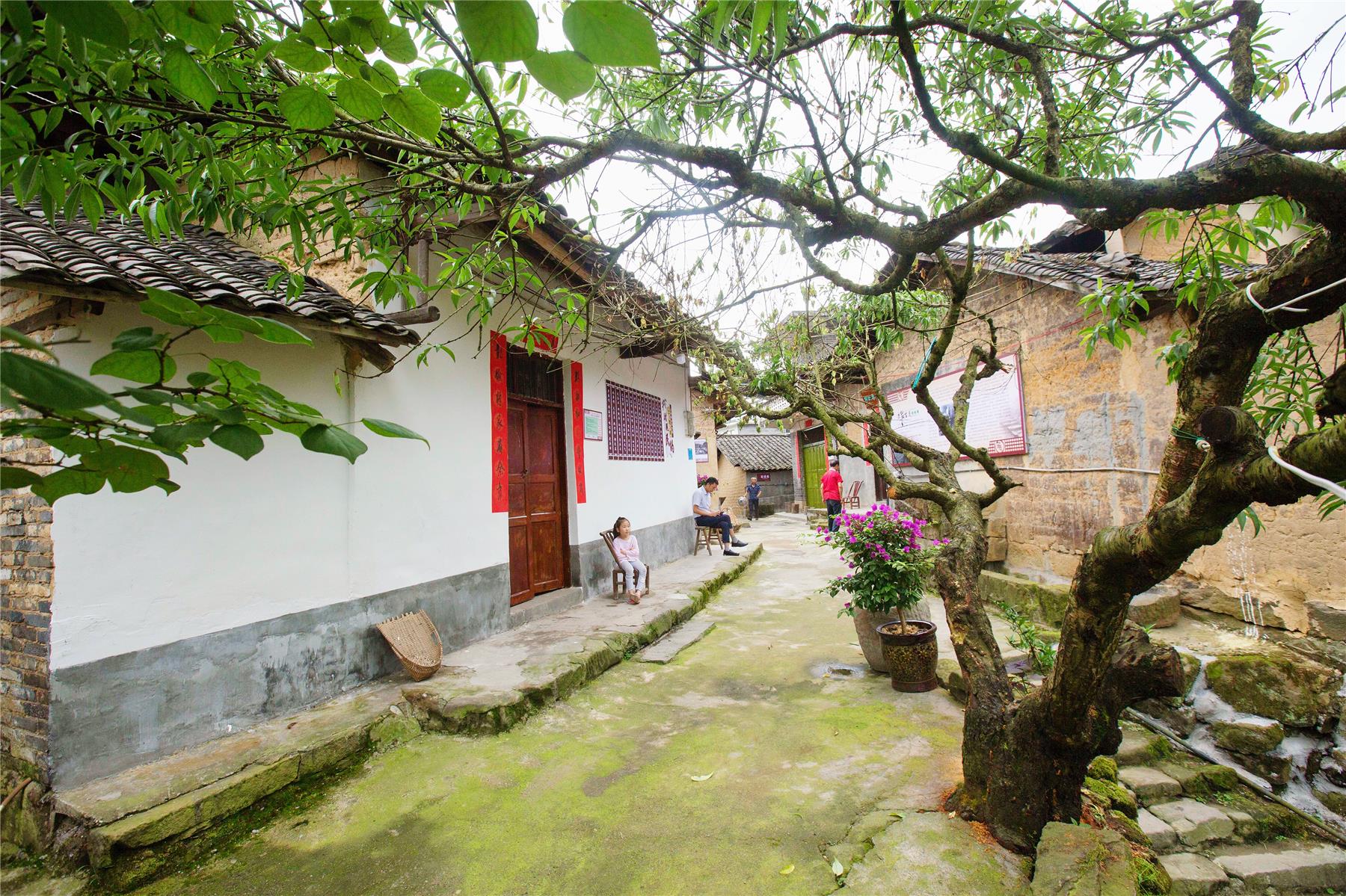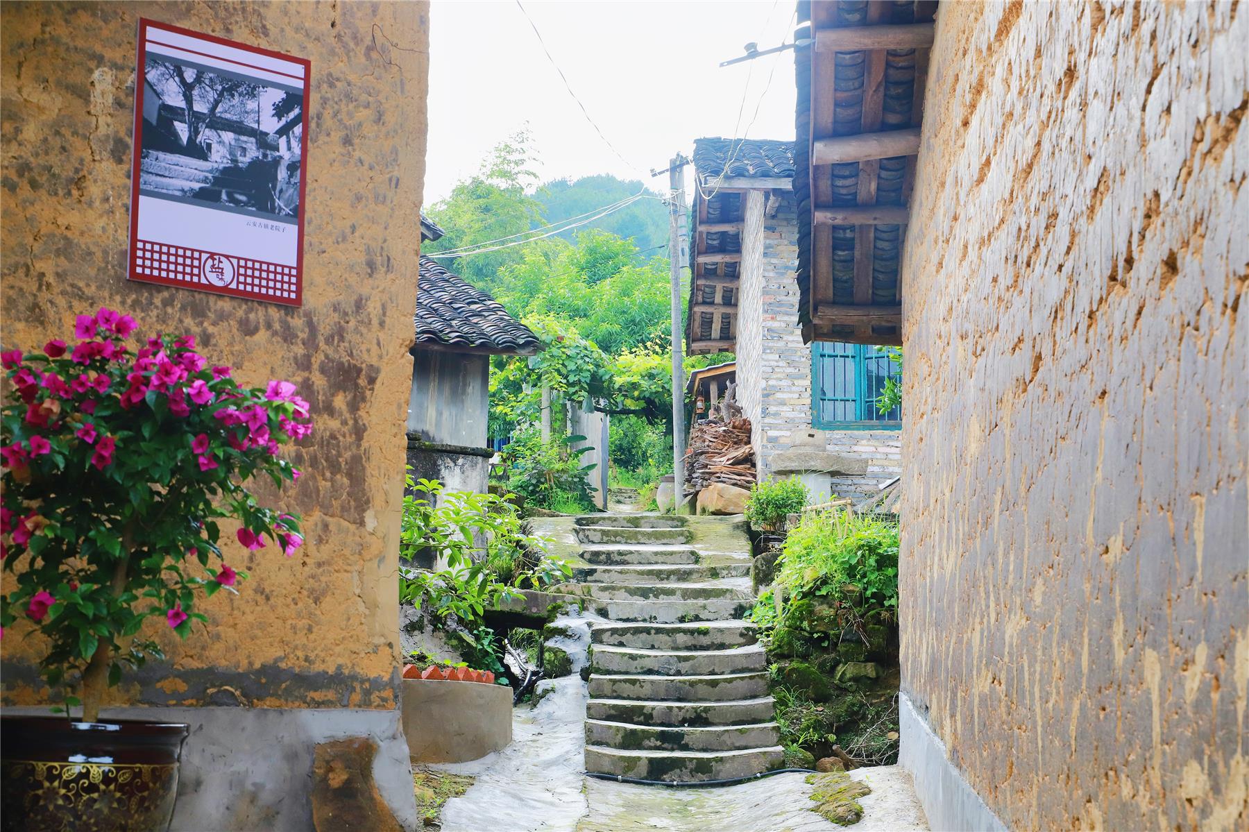 在土地坳,不僅有干凈整潔的村容村貌,還有弘揚鹽文化的文化墻,蔡家雜貨店、張家裁縫鋪、明氏煙館……這些富有年代感的青瓦房,還原了當年運鹽古道尚存時的店名。自人居環境整治行動開展以來,云安鎮充分依托歷史文化優勢,因地制宜挖掘本地特色歷史文化和民俗文化內涵,進一步打造“宜居宜業宜游”新云安,在鹽道居民點把“鹽文化”融入風貌設計,陳列古鎮歷史照片、風俗習慣、民間故事等20余處,保留了本地喜用的“竹篾”圍墻、“樹樁”板凳等特色,強調人與自然和諧,最大限度保留歷史痕跡,展現悠久鹽文化,提升群眾文化和文明素養。