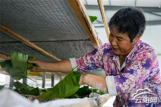 云陽網訊(記者 譚啟云)近日,鳳鳴鎮平頂村黃泥塝家庭農場一派繁忙,整齊劃一的養蠶大棚里,蠶農們正在給蠶寶寶添加桑葉。