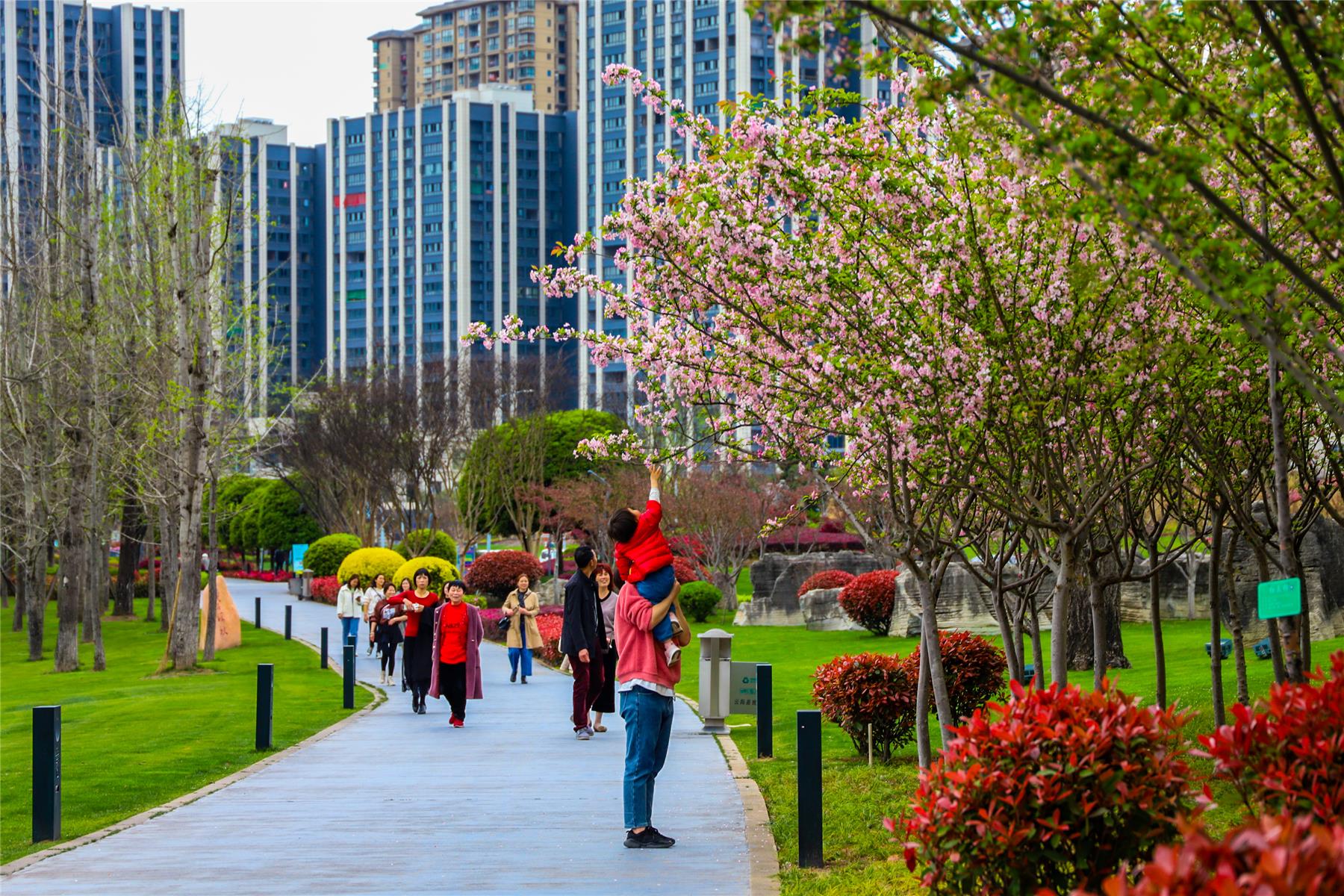 茵茵芳草間、萬千花叢中、親水步道旁,有新人的幸福微笑,有騎行者的矯健身姿,還有一家老小的其樂融融。人與自然的和諧相融,在這座公園演繹得淋漓盡致。