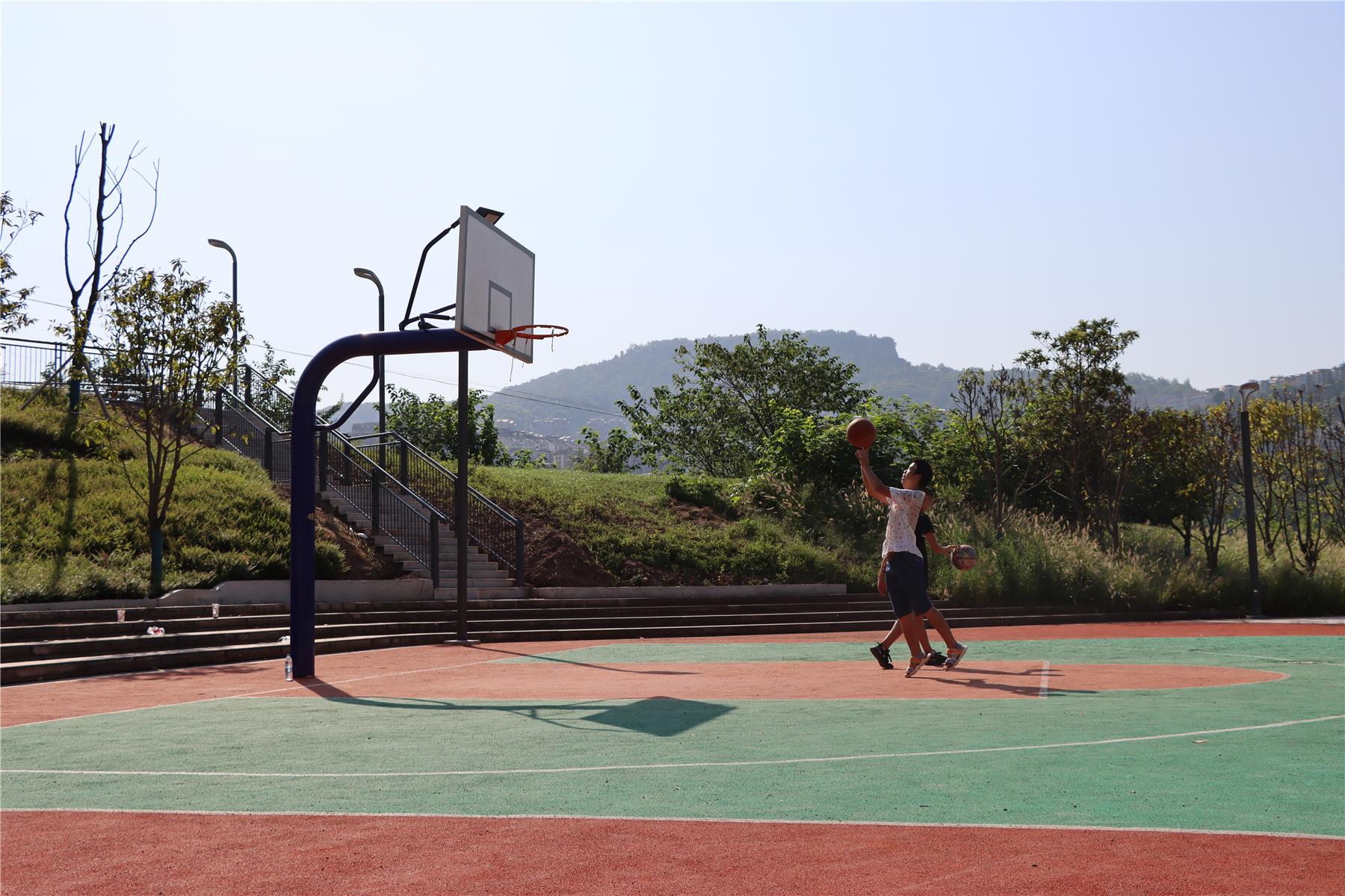 在足球場下方,幾個年輕小伙正在紅綠相間的籃球場上來回奔跑跳躍,給初秋下的公園增添了一份靈動之美。“之前,我們打籃球都是在體育場那邊,現在家門口修了一個籃球場,再也不用跑那么遠了。”剛剛說完,熱汗淋漓的黃成又迫不及待回到了球場上。