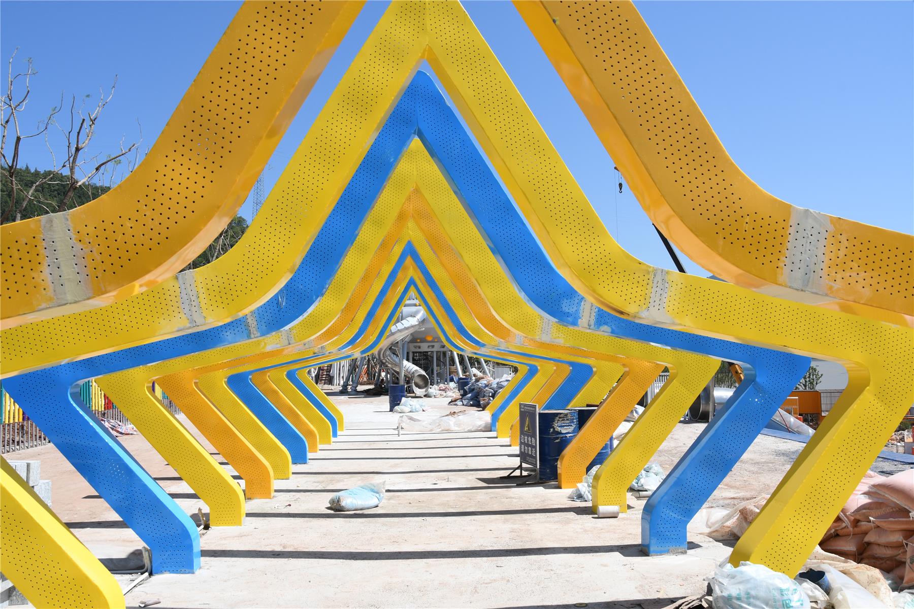 彩云陽光兒童公園是福星公園的重要組成部分,總占地面積約150畝,分為紅、紫、橙、綠、黃、藍、靛7個色彩主題區,由海、陸、空三大主題功能結構組成,設施豐富、空間多樣,能滿足0~12歲全年齡段兒童活動需求,是云陽首個以科技星空、自然森林、濱水休閑三大功能為主題的大型兒童公園,園內排列錯落有致,其景觀選用春、夏、秋、冬各一景。該公園的建成,填補了云陽大型兒童公園的空缺,為市民提供了一個闔家游玩,休閑娛樂的好去處。