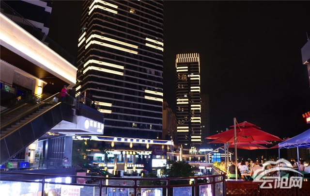 當晚,彩云梯步行街華燈齊放,霓虹閃爍,一排排融入了三峽移民文化的新中式風格建筑,與五光十色的絢麗燈光交相輝映。市民們或在店里大快朵頤,盡情享受美食樂趣,或與家人好友相約逛街,體驗美好的城市夜生活。