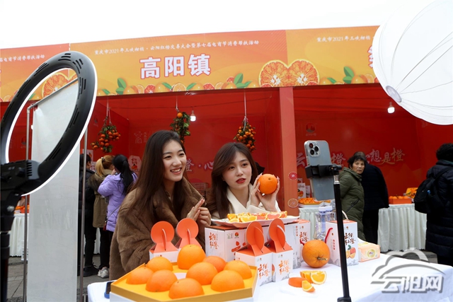 此外,縣職教中心電子商務專業(yè)的學生也在各展銷區(qū)內(nèi),學生陳小琴說:“通過此次云陽紅橙交易大會把自己所學專業(yè)知識進行直播實踐操作,盡自己所能的幫助活動銷售、推廣紅橙。”