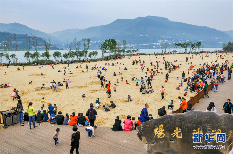 云陽環(huán)湖綠道之上,“陽光沙灘”是一個熱門打卡地。這里的沙子帶著咸咸的海風(fēng)氣味,是從福建漳州穿越千山萬水,來到位于長江之畔的內(nèi)陸城市云陽。建設(shè)“陽光沙灘”,原本云陽只是為找回因三峽工程而淹沒的逝去老城區(qū)江岸沙灘記憶,沒承想?yún)s插柳成蔭,憑借“相比濱海場地少了大風(fēng)和暴曬”的優(yōu)勢,將“陽光沙灘”建設(shè)成了國內(nèi)沙灘排球賽事的重要舉辦場地之一。資料圖 新華網(wǎng)發(fā) 劉磊 文