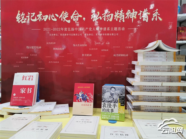 記者在云陽新華書店看到 ,書店精選了市場上主題最貼切、版本最權威的41家出版社的118種內容涵蓋黨史理論、英雄人物等多個方面的優秀圖書,開設了專區集中陳列展銷。