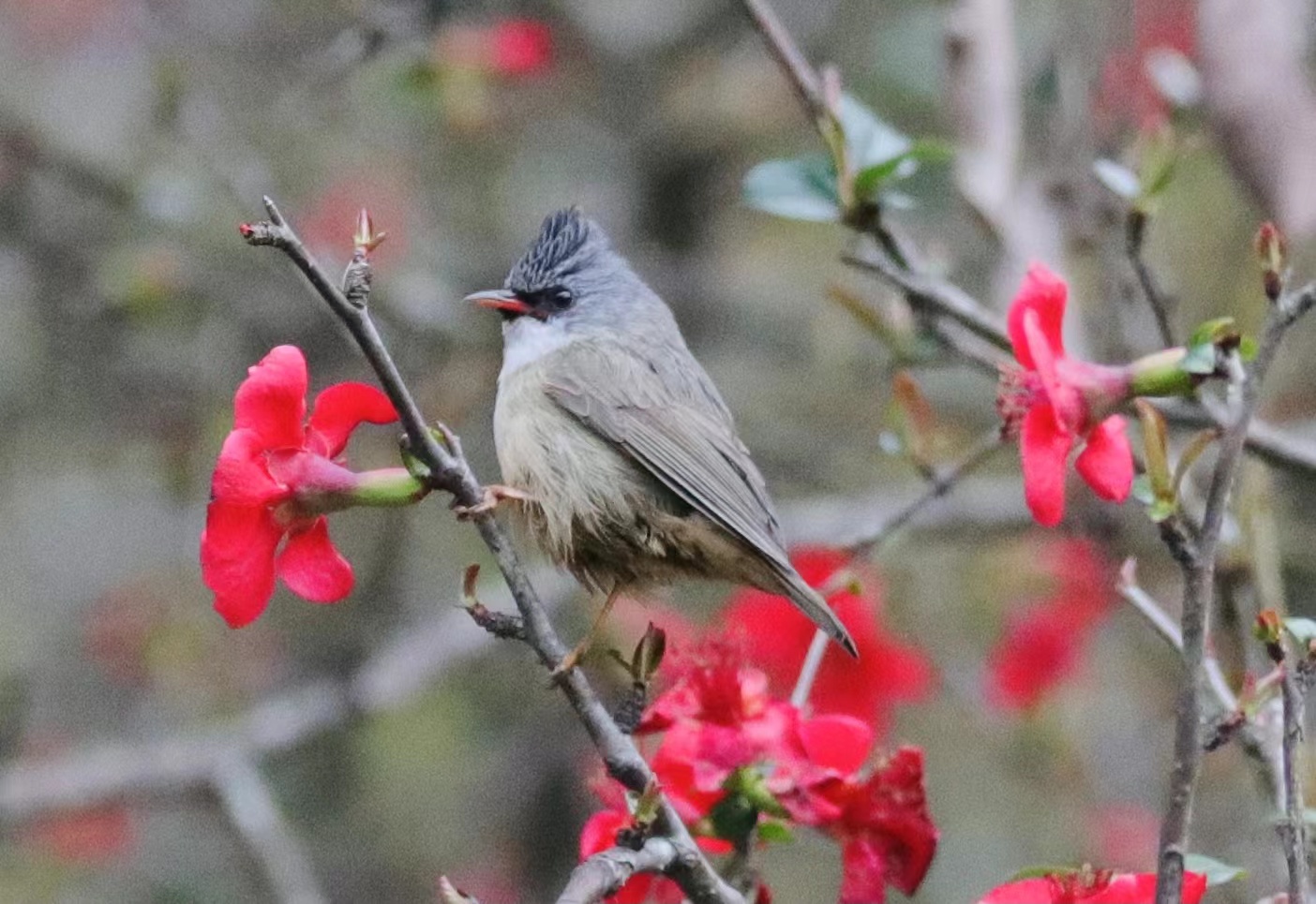 花枝搖曳,蜂蝶翩躚,飛鳥穿行,海棠灣也成為攝影愛好者的天堂。大家架好長槍短炮,一大早就蹲守在海棠樹下,而頑皮好動的鳥兒們則總是與鏡頭玩起“捉迷藏”,沒有耐心似乎很難捕捉到它們的身影。