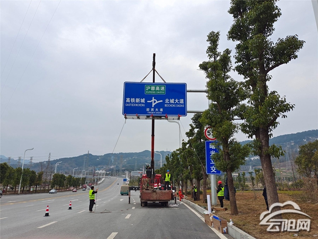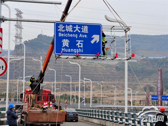 在曙光立交處,施工人員操作吊車將一塊嶄新的道路交通標識牌緩緩吊起安裝。不一會,一塊帶有高鐵新城和北城大道字樣的標識牌便安裝完畢。與之前的路牌相比,新更換的標識牌內容更為完善,指向也更為精準,大大提升了城市的形象和品位。