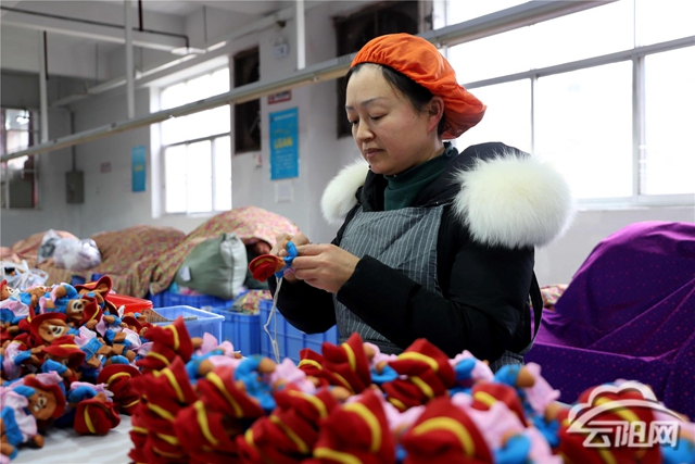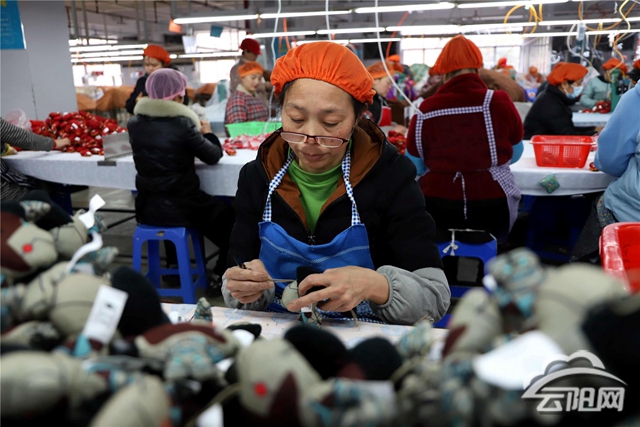 云陽網訊(記者 李歆宇 楊力)3月2日,在雄業玩具生產車間,多條加工生產線有序運轉,工人們在各自崗位上趕工,經過裁剪、縫紉、充棉、包裝等流程后,一個個精致的毛絨玩具呈現眼前,將銷往國外。