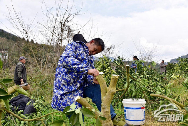 養(yǎng)鹿鎮(zhèn)養(yǎng)鹿社區(qū)麻柳塘柑橘園種植有770畝在春季采摘的晚熟柑橘,但受地勢(shì)影響易遭凍害,在縣農(nóng)業(yè)農(nóng)村委指導(dǎo)下,當(dāng)?shù)匾M(jìn)了新品種“龍回紅”。驚蟄節(jié)氣后,氣溫回升,有助于新枝條快速成活生長(zhǎng),當(dāng)?shù)乇銚屪ビ欣麜r(shí)機(jī)開展嫁接。