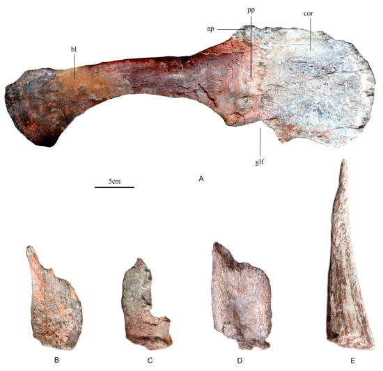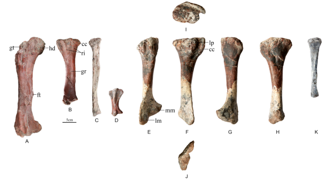 代輝介紹,元始巴山龍化石材料來自云陽恐龍動物群已發掘形成的沙溪廟組下段原址化石墻,包括肩胛骨、烏喙骨、背椎、尾椎、股骨、脛骨、腓骨、蹠骨、劍板、尾刺等部位的骨骼化石。