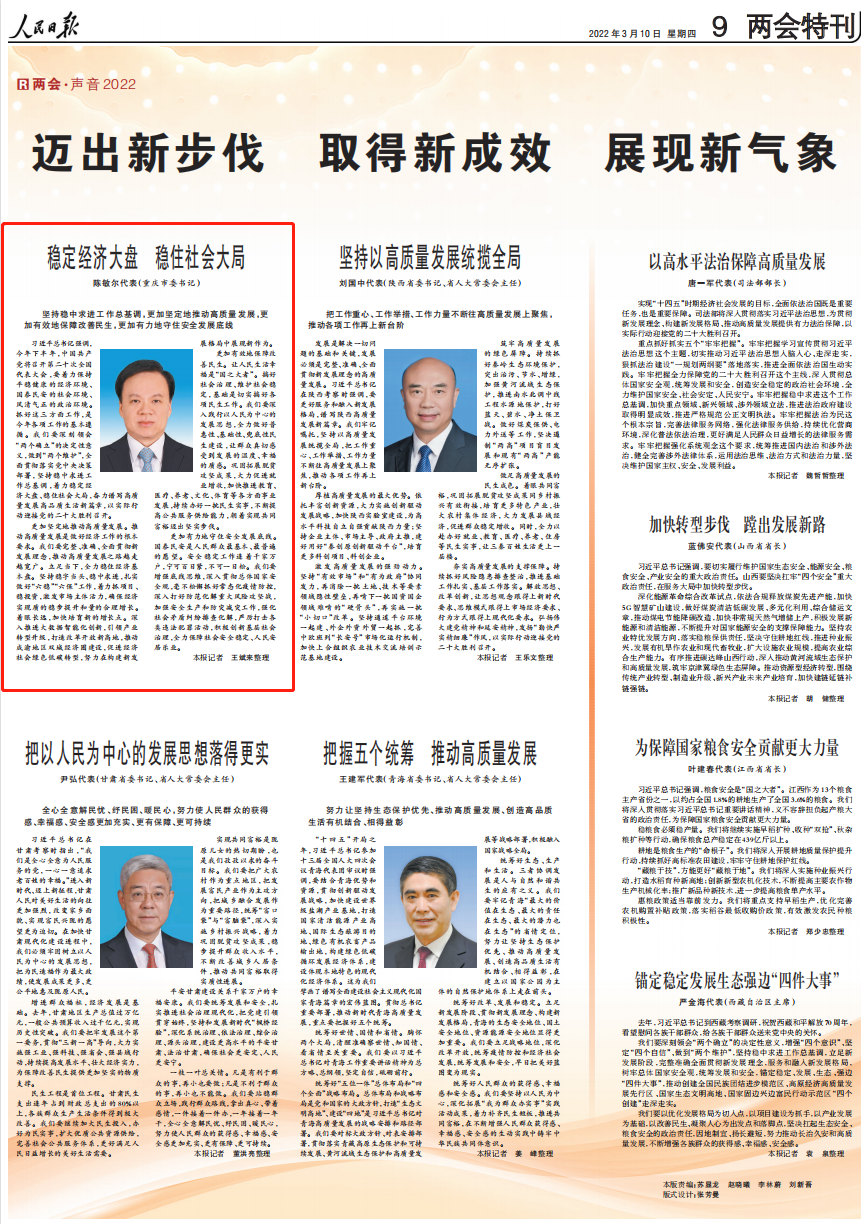 更加堅定地推動高質量發展。推動高質量發展是做好經濟工作的根本要求。我們要完整、準確、全面貫徹新發展理念,推動高質量發展之路越走越寬廣。立足當下,全力穩住經濟基本盤。堅持穩字當頭、穩中求進,扎實做好“六穩”“六保”工作,著力抓項目、穩投資,激發市場主體活力,確保經濟實現質的穩步提升和量的合理增長。著眼長遠,加快培育新的增長點。深入推進大數據智能化創新,引領產業轉型升級,打造改革開放新高地,推動成渝地區雙城經濟圈建設,促進經濟社會綠色低碳轉型,努力在構建新發展格局中展現新作為。