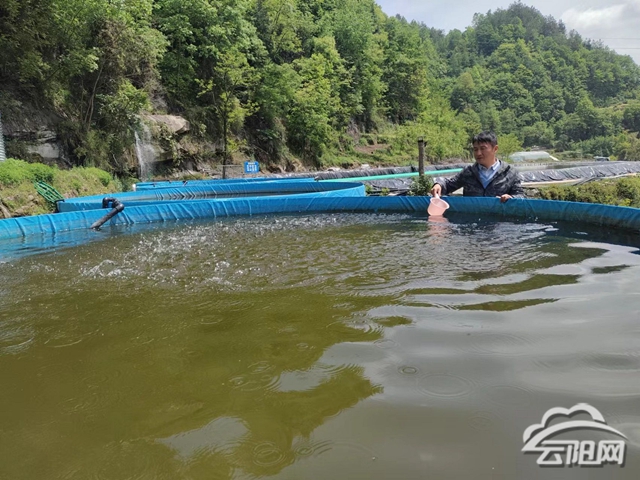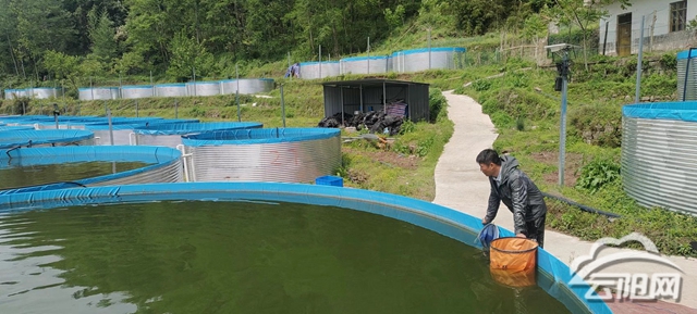 4月18日,筆者走進云陽縣豐沃水產養殖有限公司基地,潺潺的溪流橫穿基地兩岸,水質清澈見底。綠色的鍍鋅板成魚養殖桶一個連著一個,整齊有序地排列著。工作人員向桶里撒了半桶飼料,平靜的水面突然炸開了鍋,密密麻麻的魚從水下翻上來搶食。
