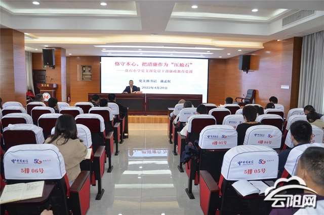 云陽網訊(通訊員 周鳳)4月28日,盤石小學組織黨員干部聆聽黨支部書記廉政教育專題黨課,落實黨風廉政建設責任制,強化黨員干部廉潔從教警示教育,筑牢黨員干部廉政“防火墻”。
