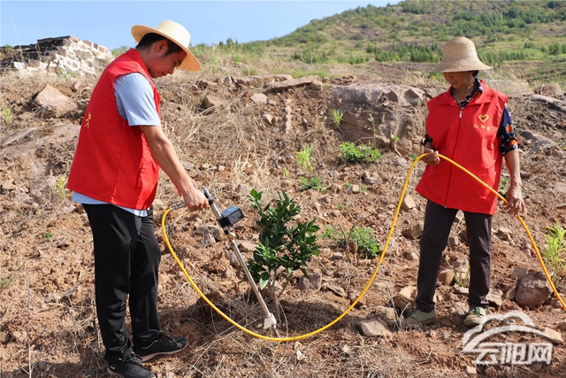 一大早,抗旱保苗志愿隊就調用設備進行抽水作業,干部群眾兩兩一組,一人牽著水管,一人進行澆灌,有序地在田間地頭開展抗旱保苗行動。同時,大家還分別對陽菊和柑橘采取掐尖和施肥的管護措施,以穩定后續的產量。