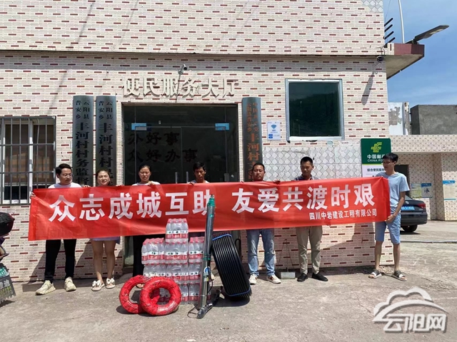 云陽網(wǎng)訊(通訊員 余莉娟)“真是太感謝你們了,這么大熱天的給我們送來了這些設(shè)備,真的給了我們村很大幫助!”8月19日,四川中巖建設(shè)工程有限公司董事長盧小云率公司員工到普安鄉(xiāng)豐河村便民服務(wù)中心大廳,將新采購的1臺水泵、300米水管、200米防水電線等抽水設(shè)備和10余箱礦泉水送到村民手中。