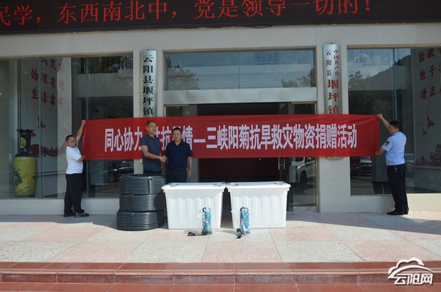 “500升蓄水桶2個,管子3圈,抽水泵2個,東西不多,希望能幫到你們。”“這是200份菊花飲品,是我們的一點心意。”“這是5000元的愛心資金。”“這是10000元愛心資金。”“我也贈送10000元。”面對旱情,堰坪鎮愛心企業家紛紛慷慨解囊。