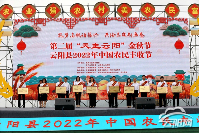 活動中,頒發了全國第七批農業產業化國家重點龍頭企業和云陽縣2021重慶市名牌產品,表彰了云陽縣2022年度“十強農業服務型組織”、云陽縣2022年度“十佳農民”,舉辦了農產品集中采購簽約儀式。