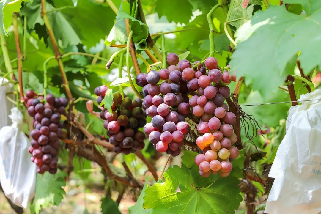 一顆顆巨峰葡萄緊密地?fù)肀г谝黄?/p>