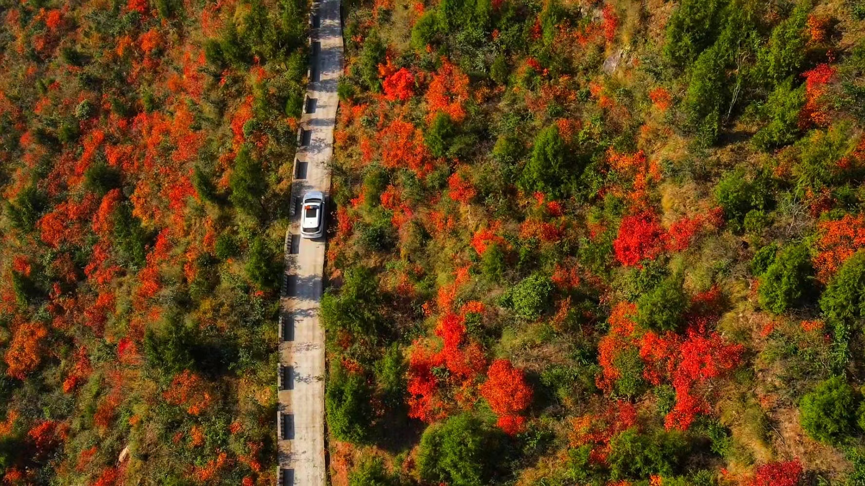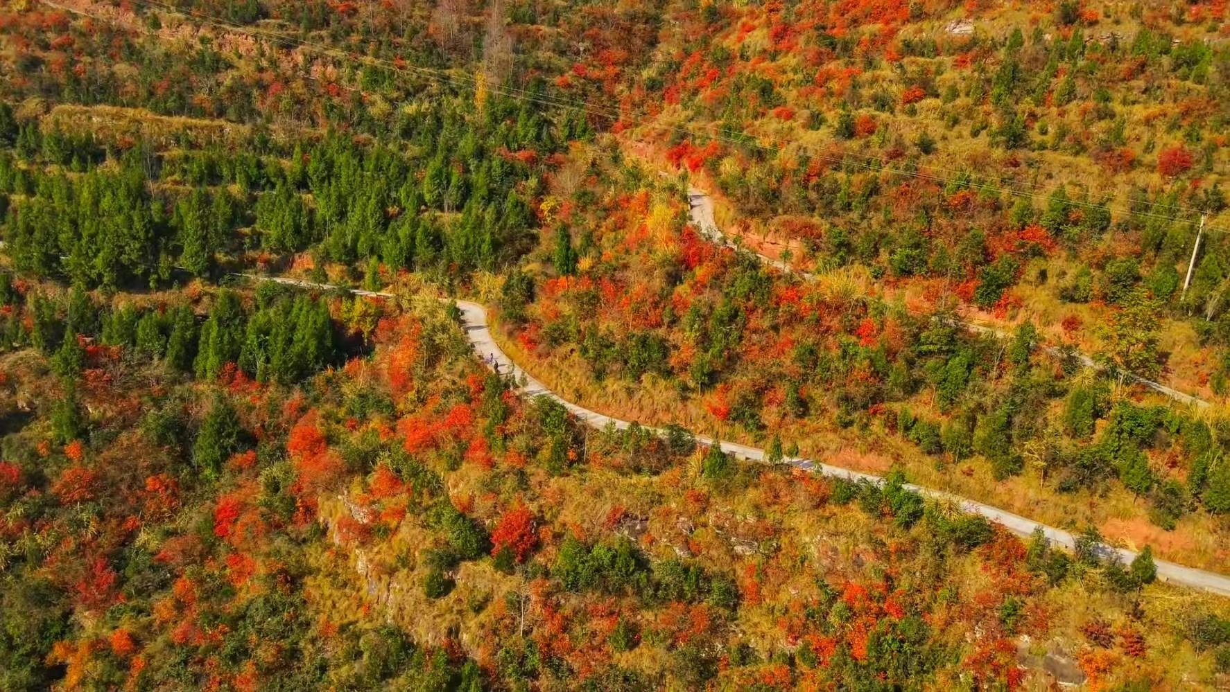 當晨光灑向大地,磨刀溪畔開始顯露熱烈絢爛的風姿,只見山巒間、民居旁、公路邊,棵棵紅葉樹葉色正濃,或燦若金,或紅似霞,漫山遍野層林盡染,蔚為壯觀。空中俯瞰,一泓碧水起微瀾,萬抹暖色織錦繡,山水相映,美似畫卷。 夕陽西下時,河水波光瀲滟,彩葉暮色作衣,大自然的調色盤美了山河,醉了游人。
