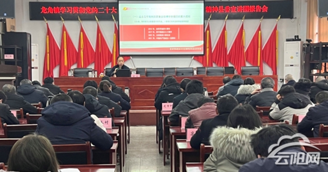 云陽網(wǎng)訊(通訊員 潘小均)1月5日下午,龍角鎮(zhèn)學習貫徹黨的二十大精神縣委宣講團報告會在機關(guān)大會議室召開。特別邀請縣委宣講團成員、宣傳部副部長黃毅同志進行主題宣講,龍角鎮(zhèn)全體干部職工、轄區(qū)各單位負責人以及村(社區(qū))干部100余人現(xiàn)場聆聽學習。