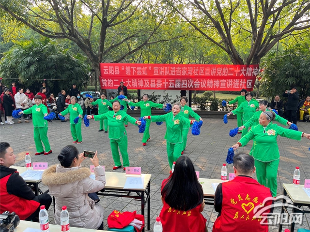 “磐下雲(yún)虹”宣講隊宣講人員還緊貼黨的二十大報告內(nèi)容及精神實質(zhì),向居民作了生動地宣講,讓黨的二十大精神在基層落地生根。