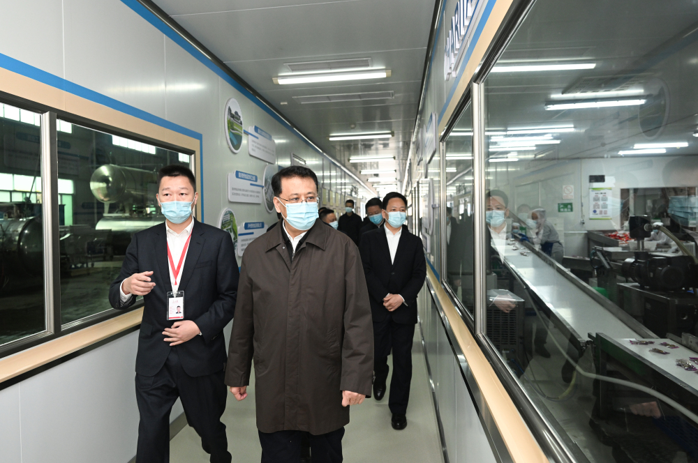 ▲3月23日上午,在梁平區(qū)綠色食品產(chǎn)業(yè)園,市委書記袁家軍了解預(yù)制菜特色產(chǎn)業(yè)發(fā)展情況。記者 蘇思 攝/視覺重慶