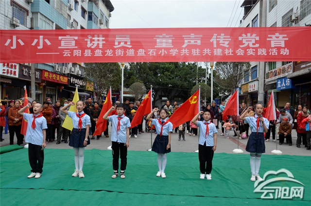 云陽(yáng)網(wǎng)訊(通訊員 周鳳)近日,盤石小學(xué)組織黨員志愿者和少先隊(duì)宣講員走進(jìn)盤龍街道盤石社區(qū)開(kāi)展 “黨建帶隊(duì)建 童聲傳黨音”共駐共建宣講志愿服務(wù)活動(dòng),學(xué)習(xí)宣傳黨的二十大精神。