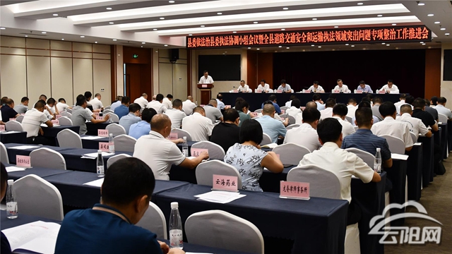 云陽網訊(記者 汪婷婷 實習生 盧青青)7月10日,縣委全面依法治縣委員會執法協調小組會議暨全縣道路交通安全和運輸執法領域突出問題專項整治工作推進會召開。縣委常委、政法委書記劉桂虎,副縣長、公安局局長薛翀參會。