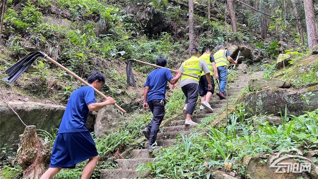 在四十八槽森林公園,巡護(hù)員們穿著熒光服,拿著柴刀,扛著滅火帚,開始進(jìn)山巡邏。除每天巡護(hù)工作外,還利用廣播、宣傳車等多種方式廣泛宣傳森林防火有關(guān)政策、法規(guī)及森林防火知識(shí),并在林區(qū)工作站設(shè)置卡點(diǎn)對(duì)過往車輛、行人進(jìn)行掃碼登記、排查詢問,讓群眾真正認(rèn)識(shí)到森林防火的重要性,自覺遵守森林防火的有關(guān)規(guī)定。護(hù)林員蔣進(jìn)明說道, “目前已進(jìn)入伏旱高溫期,極易引發(fā)森林山火,我們開展全天候巡護(hù),確保林區(qū)安全。”