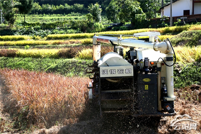 云陽網訊(記者 劉婷 趙艷林 向貞偉 趙泰庵)金秋送爽,稻穗垂簾。近日,鳳鳴鎮(zhèn)黎明古村的五彩水稻迎來豐收,連綿的稻田與老屋連為一體,滿眼盡是“喜看稻菽千重浪”的醉人景象。當?shù)卣龘屪デ绾锰鞖猓M織人工和機械進行收割,確保水稻顆粒歸倉。