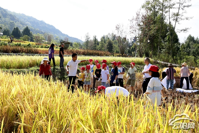 傳統(tǒng)村落是農耕文明和中華傳統(tǒng)文化的重要載體,作為云陽第一個中國傳統(tǒng)村落,黎明古村將歷史文化底蘊、田園自然風光和村民的生產生活習俗融入了“遇見黎明”、“耕讀黎明”、“花開黎明”三大板塊中,而農耕文明是其中重要的一脈。通過農文旅產業(yè)的深入發(fā)展,來黎明古村研學和旅游的人也逐漸增多。當天,就有不少的小朋友走進稻田,動手收割稻谷、敲谷脫粒,感受“一粥一飯來之不易”。