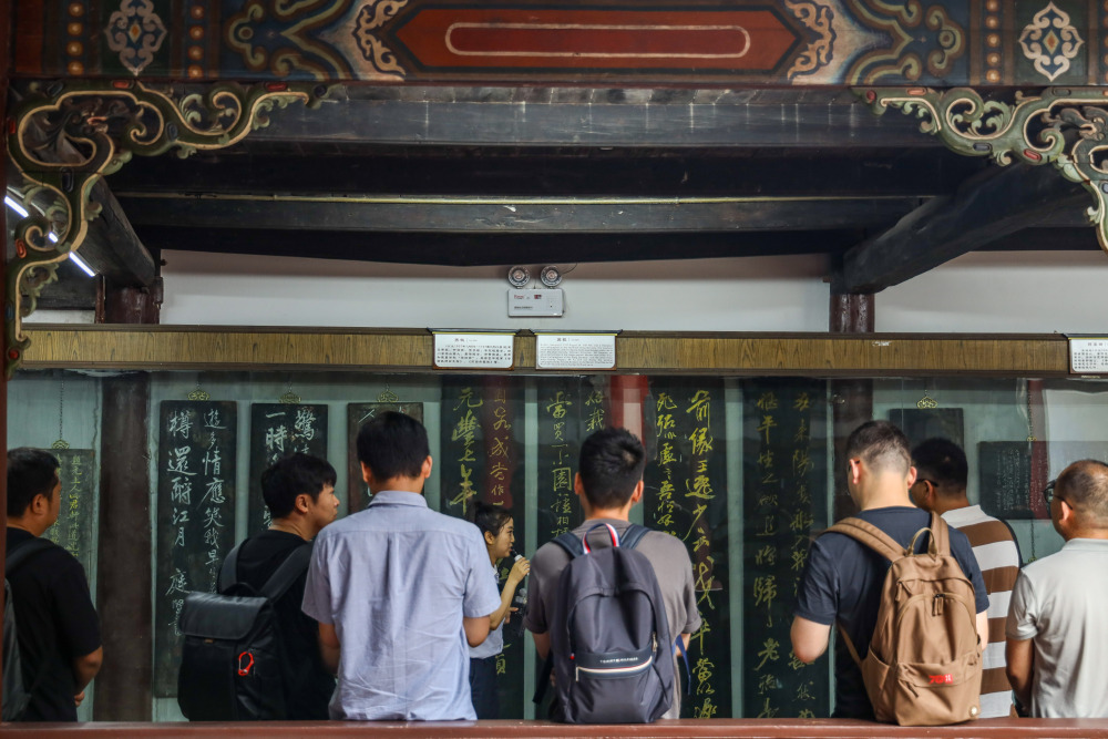▲9月11日,云陽縣張飛廟,采訪團正在欣賞蘇軾的碑刻。記者 尹詩語 攝/視覺重慶