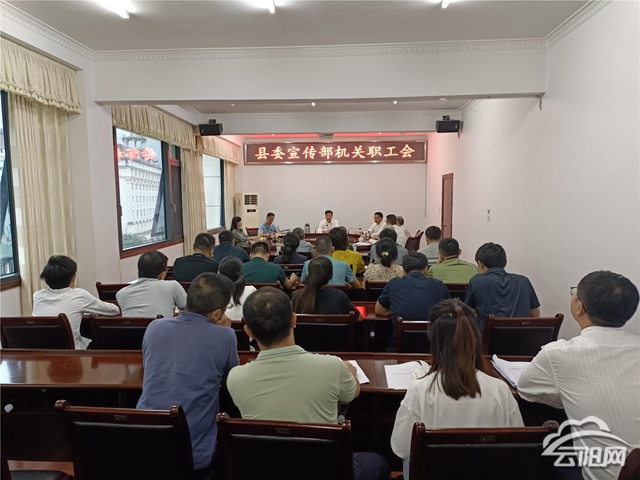 云陽網訊(記者 丁鑫 )9月20日,縣委宣傳部召開機關職工會,傳達學習了習近平總書記在主題教育工作會議上的重要講話精神、市委袁家軍書記在全市主題教育第一批總結暨第二批部署會議上的講話精神以及全縣主題教育動員大會會議精神,通報了部機關主題教育總體安排,對部機關主題教育工作進行安排部署。縣委常委、宣傳部部長曾郴出席會議并講話。