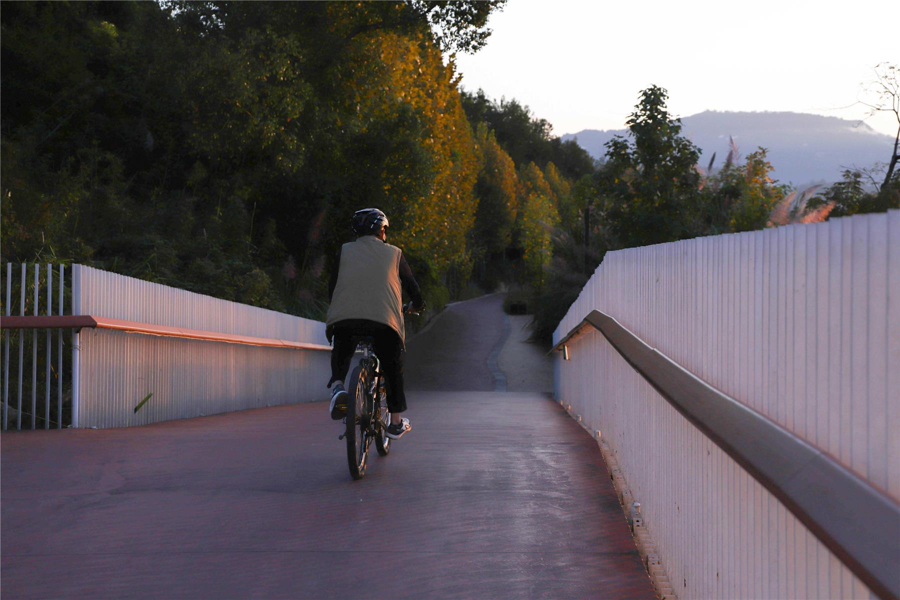 一簇簇、一叢叢蘆葦在江邊盛放,搖曳著身姿,隨風起舞,美不勝收。一江碧水平如鏡,在晚霞的映襯下,水面波光粼粼,青山、藍天、蘆葦,構成秀美畫卷。絕美秋景也吸引不少游客,他們沿江騎行、悠閑漫步、拍照打卡,飽覽秋日美景。