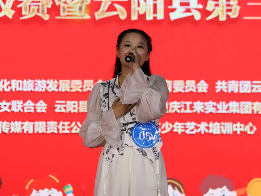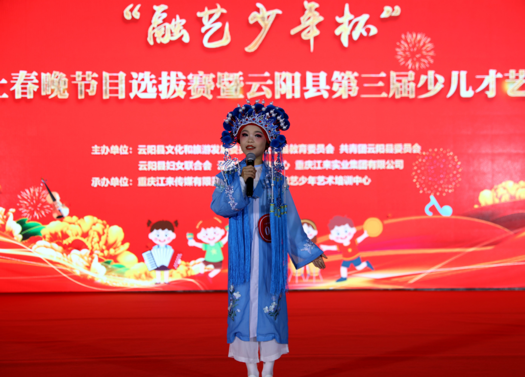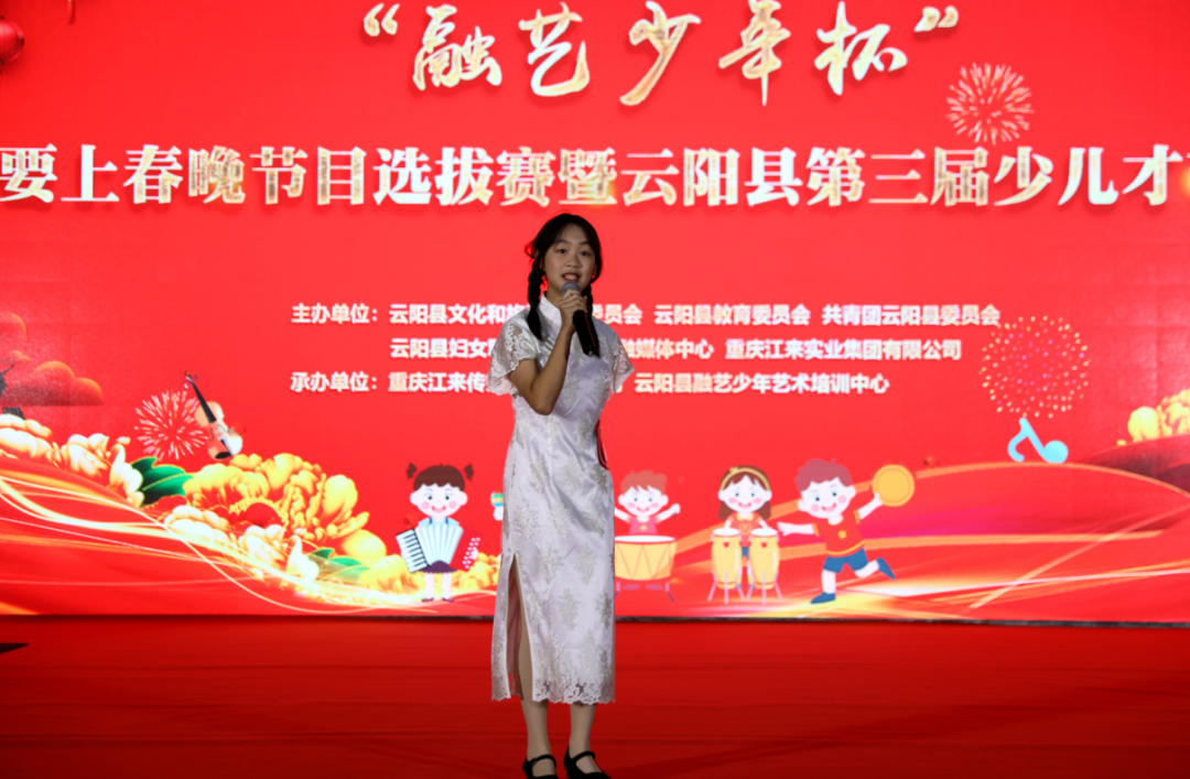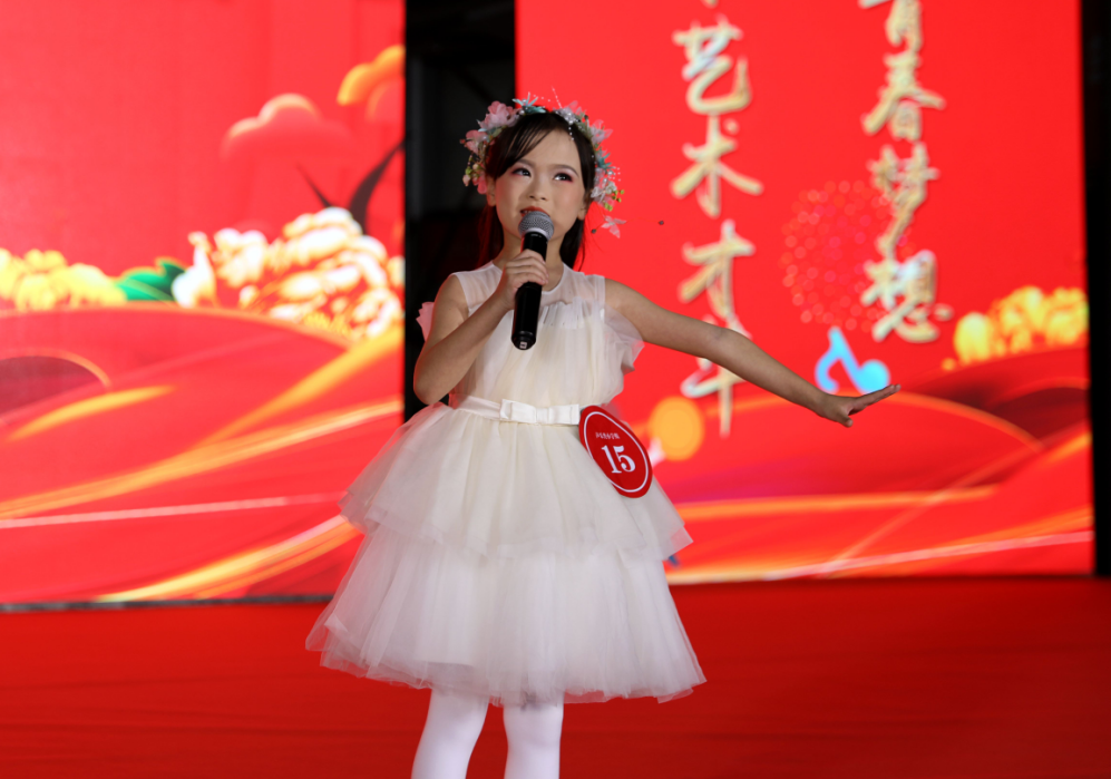 參賽選手程詩雯說:“今年我六歲了,我在比賽中唱了歌曲《竹搖窩》,能夠在舞臺上進行表演,我非常開心?!?/p>