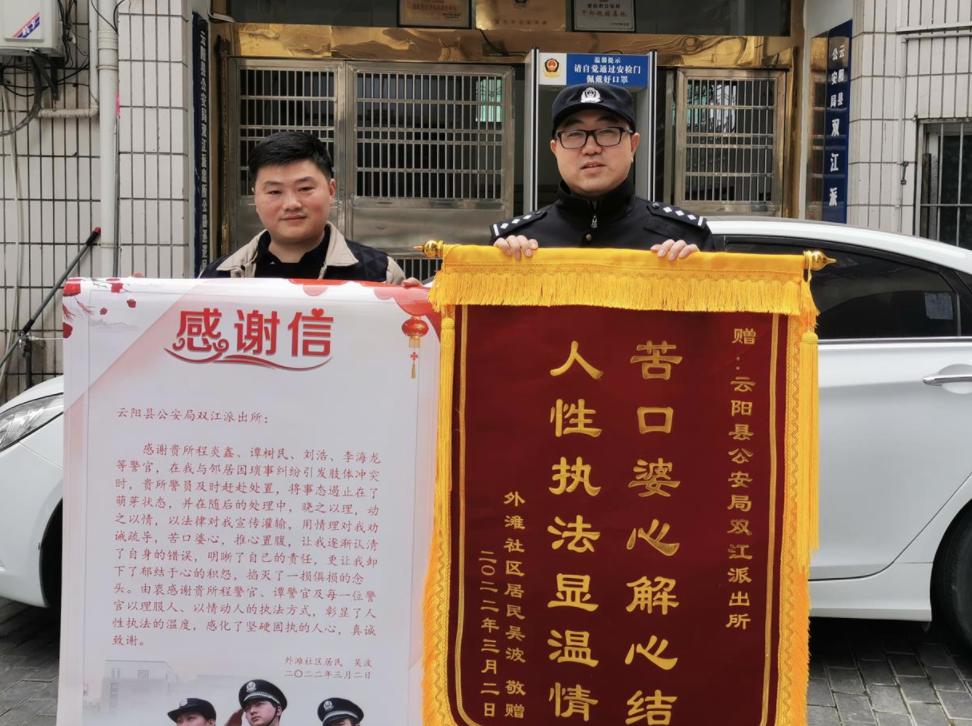 程焱鑫猶記得他親手處理的一場(chǎng)民事糾紛案,雙方當(dāng)事人系鄰里關(guān)系,吳某居住在一樓,由于吳某在屋前修筑院壩,占了一部分公攤面積,與居住在二樓的鄰居解某產(chǎn)生爭(zhēng)執(zhí),兩人因此事多次發(fā)生爭(zhēng)吵。在處理案件的過(guò)程中,雙方當(dāng)事人法律意識(shí)淡薄,抗拒接受調(diào)解,情緒比較激動(dòng)。于是,程焱鑫動(dòng)之以情,曉之以理,一邊安撫雙方的情緒,一邊為他們講解法律知識(shí)。最終,雙方認(rèn)識(shí)到了自身的錯(cuò)誤,選擇握手言和,事后還為程焱鑫送上一面錦旗,以表他們的感謝之情。