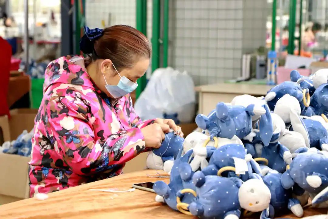 該公司是2020年招商引資來的企業,主要從事毛絨玩具生產,于2021年3月正式投產,現有員工110人。該公司今年年產值已達1600萬元,為滿足大量的訂單需求,與紅獅鎮的宏懋玩具廠、水口鎮的華盛泰玩具(重慶)有限公司同步加工訂單,為千億工業生產總值貢獻一份力量。