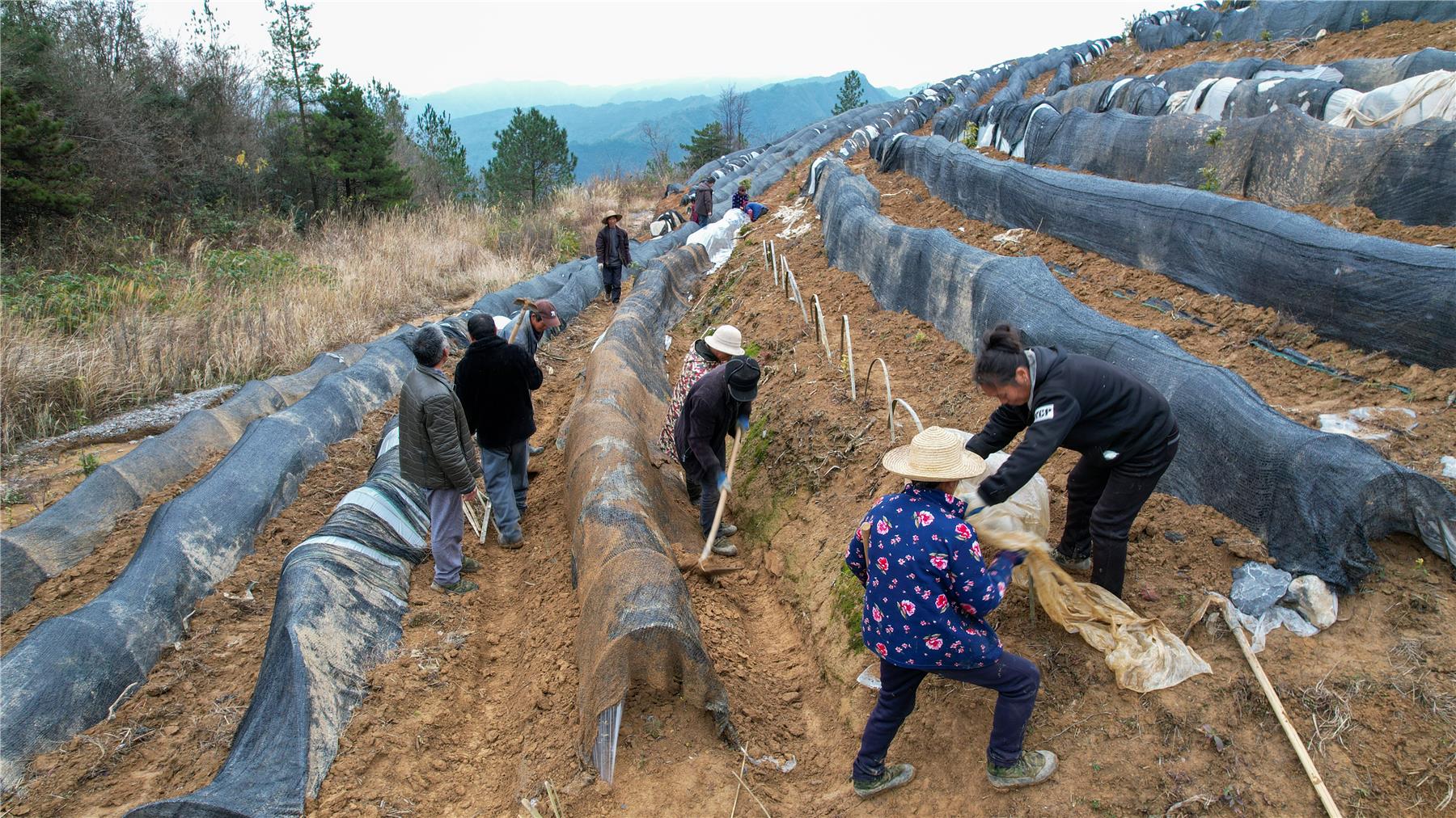 “現(xiàn)在我在茶園務(wù)工,茶葉采摘的時候就幫忙采摘,一年有五六千塊收入,加上土地流轉(zhuǎn)金,比外出打工強多了。”村民金國安說。同樣,在沙市鎮(zhèn)復(fù)埡村茶葉種植基地里,今年3月份剛種下的茶苗已經(jīng)枝葉繁茂,生機勃勃。“新栽的茶苗要蓋地膜和天膜,蓋地膜主要是起到一個保溫保濕,蓋天膜就是起到防止極端天氣。”為了提高茶苗的成活率,近日,農(nóng)技人員走進沙市鎮(zhèn)復(fù)埡村茶園,現(xiàn)場指導(dǎo)茶農(nóng)搭建拱棚,采取蓋地膜加天膜的措施,減少低溫天氣對茶樹的影響。這樣既有利于茶苗的呼吸作用,又有較好的防寒效果,確保茶苗成活率高、能產(chǎn)好茶。