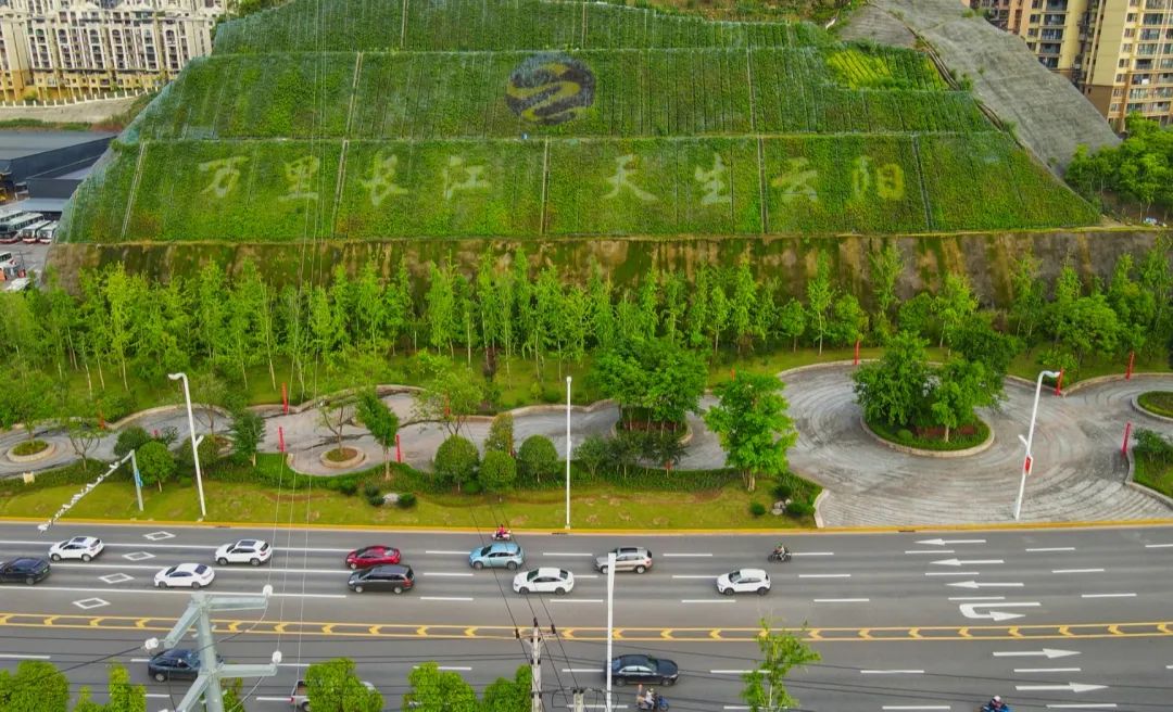 雖已是寒冬時節,但迎賓大道道路兩側還是一派郁郁蔥蔥、生機盎然的景象,芙蓉、水杉、榕樹等鱗次櫛比。途經汽車客運中心,一旁由綠化帶拼成的“天生云陽”引人注目。幾年前,它還是一處光禿禿的坡坎崖,經過綠化和環境整治,搖身一變,成為如今的小綠洲和小游園,深受市民青睞。