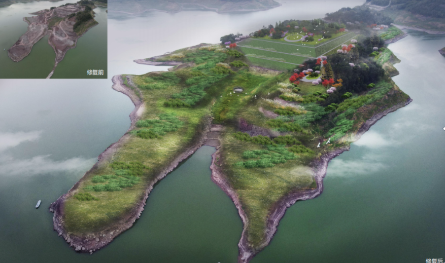 新龍梁岸線綜合治理項目實施年限至2024年,治理長度約4.4公里,治理范圍429848平方米,由場地平整工程、養護便道工程、灌溉與排水工程以及生態修復工程四部分組成。項目總體分三部分實施,2022年度完成沙灣生態修復2.3公里,2023年度完成岸線生態治理1.1公里,2024年度完成牛蹄壩節點的生態修復1公里。